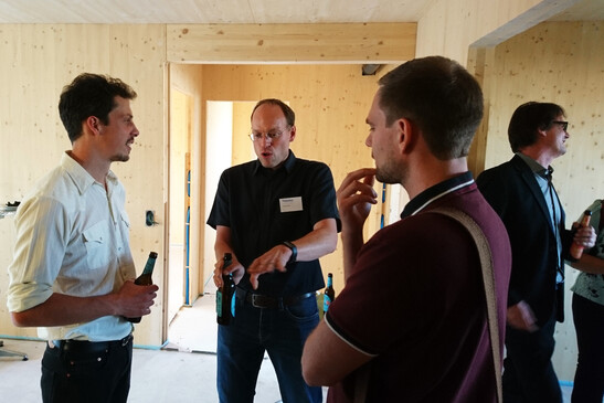 In Bern Bümplitz baut die Kirchgemeinde Bern ein neues Mehrfamilienhaus komplett aus Holz. Timbatec öffnete zusammen mit Büro 21 Architekten und der Bauherrschaft die Türen und luden zum Apéro Riche auf der Baustelle ein. Wir danken den über 60 ArchitektInnen und weitere Interessierte für das grosse Interesse.