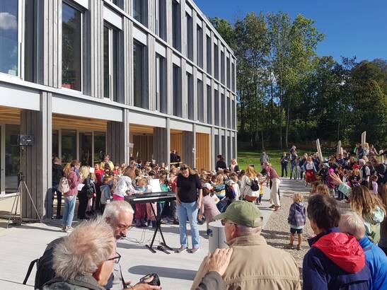 In den nächsten zehn Jahren braucht es Schulhäuser für rund 3000 zusätzliche Schulklassen. Diese werden vorzugsweise mit regionalem Holz erstellt. Ein gutes Beispiel dafür entstand in Prêles auf dem Plateau de Diesse oberhalb des Bielersees. Am 22. September wurde die neue Schulanlage offiziell eröffnet.