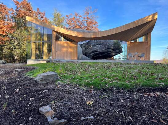 Ein Holzbau der Extraklasse: Gekonnt integrierte Christian Wassmann einen Felsen in das neue Zuhause für seine Familie. Wir durften das Projekt in New York als Statiker begleiten. Umfassende Projektinformationen vom Architekten dazu im «Report Architecturaldigest» auf der Folgeseite.
