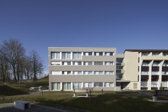 Was lange als undenkbar galt, ist heute Realität: Spitalbauten komplett aus Holz. Direkt neben dem Kantonsspital Freiburg wurde ein ehemaliges Kloster der katholischen Kirche zu einem Psychiatriespital umgenutzt und mit zwei Neubauten aus Holz erweitert.