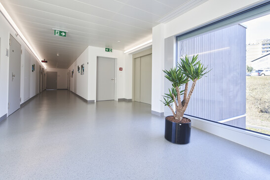 Jedes Zimmer ist ein eigener Brandabschnitt. Ein Patient muss von einem Feuer