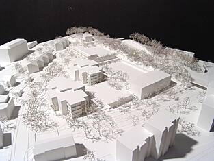 Das Projekt MOSAIK zeichnet sich durch eine gute Integration ins Quartier aus. Bestehende Gebäudeeinheiten werden mit Holzmodulen erweitert. Zusätzlich gibt es zwei neue Gebäude: den Gemeinschaftstrakt an der Schöneggstrasse und das Sportgebäude im südlichen Teil der dreieckförmigen Parzelle. Das Projekt überzeugt finanziell und ökologisch, da es den Bestand ressourcenschonend integriert und zusätzliches Raumprogramm ökologisch mit Holz ergänzt. Trotz geringeren Geschossflächen überzeugt das Raumprogramm aus organisatorischer und betrieblicher Sicht. Wie ein MOSAIK sind sowohl die Baukörper mit den dazwischenliegenden Aussenräumen auf dem Schulareal als auch die zueinander versetzten Klassenräume in den Klassentrakten angeordnet.