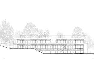 Das neu zu schaffende Gemeinschaftshaus wird über einer vorhandenen, unterirdischen Schutzanlage errichtet, die hier als Grundlage dient. Hierbei ist die Tragstruktur direkt auf die Tragachsen der Schutzanlage abgestimmt, um Lasten effizient abzutragen.