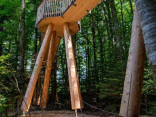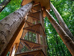 Der Waldspielplatz beim Wirtshaus «Alter Bären» wird um eine Attraktion reicher. Der 25 Meter lange Baumwipfelpfad lädt Familien zu spannenden Naturerlebnissen in luftiger Höhe ein – inklusive einer fast acht Meter langen Rutschbahn als krönenden Abschluss.
