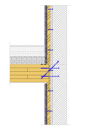2-D und 3-D-Darstellung des nachträglich betonierten Treppenhauskerns: Die Anzahl nötiger Verbindungsmittel und die Stärke der Betonwand kann dank diesem Verfahren reduziert werden.