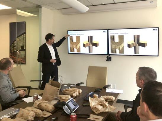 Pendant près de trois semaines, Stefan Zöllig et Marcel Herzog de TS3 ont voyagé en Amérique du Nord. Ils ont pu présenter leur nouvelle technologie à un public international de spécialistes lors de plusieurs réunions ainsi que par leur exposé à la MassTimber Conference à Portland.