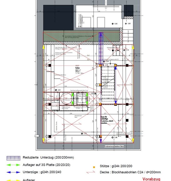 Pour cela, de nombreux pièces, par exemple le moulin à moutarde et le tamis à farine, ont été reconstruits. Au-dessus du sous-sol et le rez-de-chaussée sont recouverts de nouveaux plafonds en madriers. Timbatec a calculé les les sections et les dimensions des éléments en bois neufs et rénovés, afin qu'ils soient L'entreprise de construction Zubler AG a finalement réalisé les travaux.