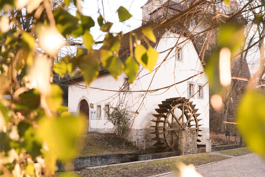 La force de la roue à eau suffit à faire fonctionner le moulin à moutarde. Les lourdes meules sont actionnées pour les céréales sont mises en mouvement électriquement. La société a pas seulement rénové et réaménagé l'intérieur du moulin du château. Elle a créé également créé une pièce supplémentaire qui est utilisée comme cave à moutarde. "Nous y planifie également des apéritifs et des activités culturelles", explique Urs Wälchli.