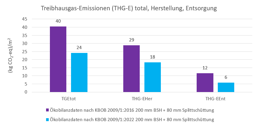 Des corrections ont été apportées dans différents domaines ont eu lieu afin de rapprocher les valeurs théoriques de la réalité. Le bois lamellé-collé et les autres produits en bois sont environ 25% mieux placés dans les critères mentionnés. mieux que dans les données précédentes. D'un autre côté, les produits de construction Les produits en béton sont aujourd'hui classés de manière nettement plus nocive pour l'environnement.