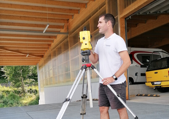 A Birmensdorf, un bâtiment commercial est surélevé. La surélévation est accessible depuis le bâtiment voisin existant par une rampe en bois de 35 mètres de long et sert de parking pour les véhicules à moteur. Les relevés de construction au tachéomètre ont eu lieu cette semaine. Ils constituent la base de la planification détaillée.