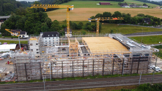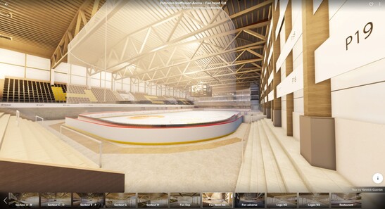 La nouvelle Raiffeisen Arena en bois, d'une capacité de 4'650 places assises, sera la maison mère du HC Ajoie. salle de match à domicile du vainqueur de la Coupe de hockey sur glace HC Ajoie. Le stade a été construit en bois de l'union de communes "Syndicat intercommunal District de Porrentruy (SIDP)". Timbatec a développé un concept pour l'utilisation du bois dès la phase d'avant-projet. d'utilisation du bois et accompagne depuis lors le processus. Aujourd'hui, le stade est presque terminé et peut être visité dans le cadre d'une visite virtuelle. (Cliquez sur l'image)