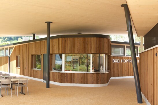 La nouvelle construction TS3 couvre, apparemment en apesanteur, les bâtiments d'exploitation et les vestiaires de la plage de Brunnen. En collaboration avec Dettling Holzbau et steinerARCHITEKTUR, TS3 vous invite à une visite du projet avec apéritif - une bonne occasion de découvrir cette technologie.