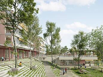 Le projet « Esplanade » de Ramser Schmid Architekten GmbH (architecture et maîtrise d'œuvre) a été retenu comme projet lauréat parmi les 25 propositions soumises. Les compétences en génie civil sont assurées par Aschwanden & Partner, Zurich, en collaboration avec Timbatec Holzbauingenieure, en tant que responsables.