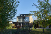 L'ensemble de la construction a été réalisé en ossature bois. Le toit en appentis décalé constitue une particularité. Deux bandes lumineuses ont été placées dans le décalage sous le faîte. La majeure partie du premier étage est constituée d'une galerie ouverte qui fait également office de chambre à coucher. La galerie repose sur une poutre au-dessus de la porte de la terrasse, qui a été conçue comme une porte coulissante à levage.