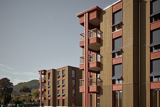 Le projet de construction comprend deux bâtiments de trois étages chacun, reliés par un rez-de-chaussée commun. Les deux bâtiments sont construits en bois, avec des plafonds massifs apparents en bois lamellé-collé et des murs intérieurs porteurs en ossature et en bois lamellé-croisé. Les murs extérieurs sont construits en ossature et le contreventement est assuré par une cage d'escalier en construction massive. Le rez-de-chaussée combine des murs extérieurs en bois et un plafond en béton. Toutes les surfaces sont en béton apparent ou en bois, ce qui confère à l'ensemble un caractère moderne et naturel.