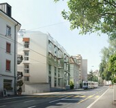 Le nouveau bâtiment de remplacement de six étages situé dans la Stampfenbachstrasse à Zurich abrite des petits ménages sur un peu plus de 55 mètres carrés. Grâce à une paroi pivotante judicieusement placée, des armoires vestiaires mobiles et des tiroirs dans le plancher creux, l'espace de vie est modulable et varié, les habitants ne doivent apporter que peu de meubles.