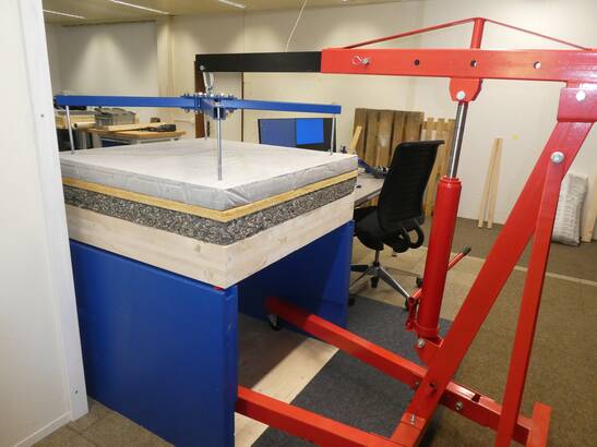 Pour nos clients, nous testons dans notre banc d'essai de bruits d'impact des structures de sol innovantes avec des mesures comparatives. Le banc d'essai des bruits d'impact est le résultat de plusieurs travaux de bachelor à la Haute école spécialisée bernoise de Bienne.
