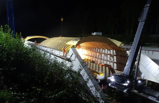 Switzerland's first wildlife bridge made of wood is quickly taking shape. One roadway is already covered with the wooden girders. Timbatec has been committed since 1998 to ensuring that such structures can be realized from the natural raw material wood. A site visit will take place on 16.09.2020 - it still has last free places.