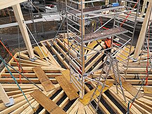 Timbatec Holzbauingenieure Schweiz AG was able to contribute its expertise in the field of statics and construction, in the optimization of the V-columns and the construction details. In particular, this took into account the circular economy issue with minimal use of fasteners.