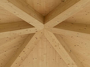 Thanks to the minimal use of fasteners, the pavilion can be dismantled at any time and reassembled at an alternative location. In addition to the range of wood products used, which stores CO₂ and actively protects the climate, reuse and circular construction were generally prominent on the project agenda. The foundations used were made from used concrete slabs from the Zurich-Kloten airport runway.
