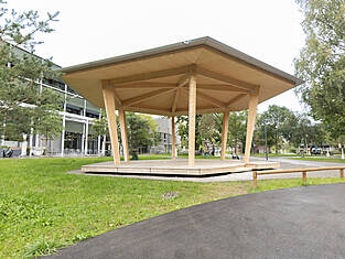 Cleverly designed, sustainably built. Last spring, the new pavilion in Uster town park was erected by the professionals from Holzbau Oberholzer, Eschenbach. Within a short space of time, the timber construction design conceived by Winfried Schneider has become Uster's meeting zone.