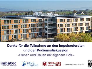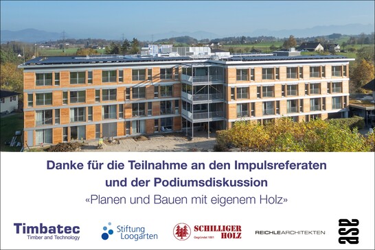 «If you build with your own wood, you get a building with added value and at the same time create an emotional connection to your own raw material». Keynote speeches and a panel discussion were held on the focus topic of «Planning and building with your own wood» in the newly extended two-storey «Esslinger Loogarten».