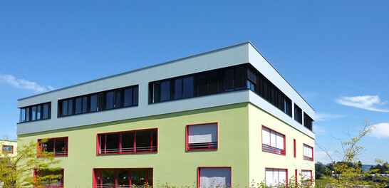 The initial situation In order to obtain more (school) space, the International School Zurich in Wädenswil decided to extend its school building by an additional floor. For weight reasons, the exterior walls as well as the roof were realized in wood element construction. The load-bearing interior walls are made of sand-lime brick.