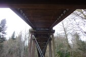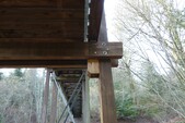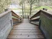 The two main glulam girders, their supports and the steel structure connecting the girders were in good order. Based on the condition analysis, the pedestrian bridge was rehabilitated in such a way that it can be used until at least the year 2030. Timbatec was responsible for the entire execution planning as well as for the construction management. Main girders, their supports and steel structure could be retained. The complete stairway structure, the runway decking and longitudinal beams had to be completely replaced. The connection of the stairs to the terrain was also redesigned in order to better comply with the structural wood protection. The first two steps, made of wood in the original bridge, were newly made of concrete. All new wooden components were again treated with a pressure impregnation (Impralit-KDS chrome-free brown).