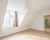 A new ribbed floor above the existing solid structure serves as a load-balancing slab. This allows the forces of the newly built floor to be transferred to the load transfer points. On top of this now stands the addition in stud construction, partly with an integrated knee wall section. The interior walls are built as an encapsulated construction for fire protection reasons.