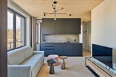 The first replacement building in an inner-city location in pure timber construction was erected within 4 weeks. The building is supported by the central core and the fire walls, the street and courtyard facades are designed as flexible skeleton structures. There are three 2.5 room flats on each of the five floors, the top ones being duplexes.