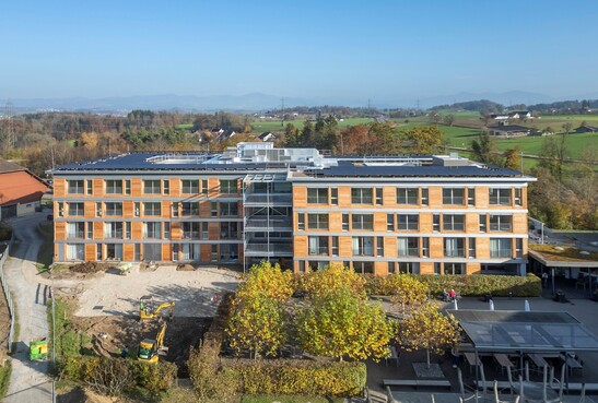 For this two-story addition, Timbatec was responsible for the fire protection, structural engineering, and building physics aspects of the project. The requirements for the construction project were diverse and demanding: The use of TS3 technology, fire protection solutions with encapsulated cross-laminated timber (CLT) floors and walls, as well as fulfilling the client’s request to source the approximately 2,000 m3 of wood required from the forests of the surrounding municipalities of Küsnacht, Erlenbach, Herrliberg, and Egg. This required a three-part tender for the forestry operation (timber procurement), the timber industry (sawing and further processing), and the timber builder—a collaboration that combined technology, logistics, and regionality.