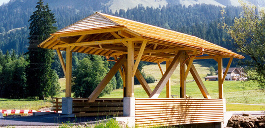 With the Geissegg Bridge, the long tradition of wooden bridges in the Bernese Oberland is being continued or resumed. In contrast to the centuries-old bridges, the payload today is about 10 times higher. Instead of horse-drawn carts with a maximum weight of about 2 - 3 t, today 34 t long timber wagons and touring cars can be expected. With modern timber construction technology, this can be solved without any problems.