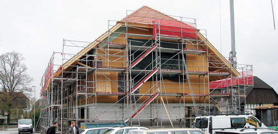 Due to the use of the floors (3 residential floors), the building project was classified as class Q2 in terms of fire protection. Thus a quality management in the project planning and execution could be kept. The supporting structure could be executed with building materials with fire resistance REI30. The exterior walls were built as timber frame construction with insulation with flexible wood fiber insulation boards; the floor slabs with LFE 500 mm lignature. Special attention was required for the floor ceilings, which, as apartment partition ceilings, had to achieve a sound insulation of Ln, w < 55 dB and an airborne sound insulation of R,w > 52 dB. This was achieved with Lignatur silence and additionally a two-layer heavy bitumen structure with a cement underlay.