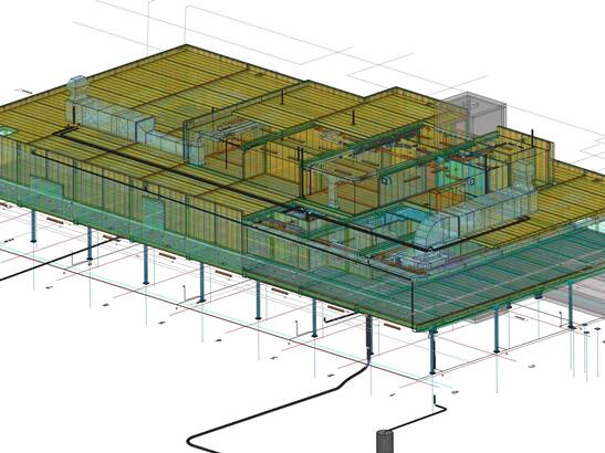 In the 3D model of the "timeout" staff restaurant at the Aarau Cantonal Hospital, all the information from various specialist planners come together.