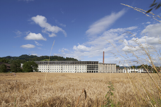 Die hundert Meter lange Fabrikfront entlang der Gleise der RBS Bahn und das zurückversetzte Gebäude B mussten stehen bleiben. Die zwei Baukörper wurden sorgfältig saniert und in Loftwohnungen, Kreativflächen und Kleinindustrieflächen umgewandelt – und mit einer zweigeschossigen Aufstockung erweitert. Um die darunter liegenden Geschosse möglichst wenig zu belasten, entstand die Konstruktion in Holzrahmenbauweise. Timbatec war für die Statik der Aufstockung, die heute 133 Etagen- und Maisonette-Wohnungen beherbergt, verantwortlich.