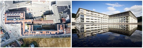 70 x 40 Meter grossen Gebäude. Beide Bauten sind 18 Meter hoch und wurden um