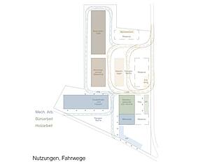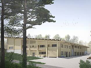 Der neue Forstwerkhof umfasst ein zweigeschossiges Betriebsgebäude in Holzbauweise und eine Einstellhalle für Maschinen, Geräte und Fahrzeuge. Über 95 % des Materials stammen aus stadteigenen Wäldern. Dabei wurde auf minimale Bearbeitung geachtet: Die Tragkonstruktion der Halle besteht aus Rundholz, das direkt aus dem Wald eingebaut wurde. Das übrige Fichten- und Tannenholz wurde in einer nahegelegenen Sägerei sowie bei regionalen Verarbeitern zu Brettern, Balken und Leimholz verarbeitet und kehrt schrittweise auf die Baustelle zurück. Kurze Transportwege machen den Neubau besonders energieeffizient und CO₂-speichernd; die Beheizung erfolgt mit stadteigenem Stückholz.
