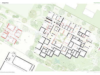 Alma Maki überzeugte im Wettbewerb mit einem konsequenten Weiterbauen des Bestands. Statt auffälliger Neubauten werden rund 20 % der Flächen neu organisiert und effizienter genutzt, ergänzt durch gezielte Eingriffe nur dort, wo sie funktional notwendig sind. Die Haltung, bestehende Substanz als Ressource zu verstehen und weiterzuentwickeln, war ausschlaggebend.