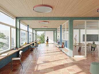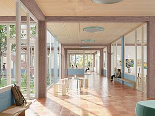 Der Beitrag «Esplanade» von Ramser Schmid Architekten GmbH (Architektur und Generalplanung) ging unter den 25 Eingaben als Siegerprojekt hervor. Für die Kompetenzen des Bauingenieurwesens zeichnen Aschwanden & Partner, Zürich gemeinsam mit Timbatec Holzbauingenieure als Verantwortliche.