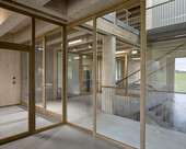 Vertikaler Zirkulationskern, Mischung aus Holzbau und Betonanwendung.