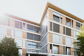 Für die Aufstockung kam die TS3-Technologie zum Einsatz, bei der Brettsperrholzplatten längs- und stirnseitig mit Giessharz verbunden werden. So entstehen massive, zweiachsig tragende Deckenplatten, die Lasten präzise und effizient auf die tragenden Wände und Stützen der bestehenden Massivbaugeschosse ableiten – diese Bauweise zeichnet sich durch die hohe Tragfähigkeit aus und ermöglicht schlanke Konstruktionen in Holzbauweise.