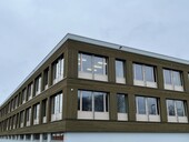 Das Gebäude ist als Hybridbau umgesetzt. Die Tragstruktur in Massivbauweise wurde vorgänig erstellt und mit Aussenwandelementen in Holzrahmenbauweise bekleidet.