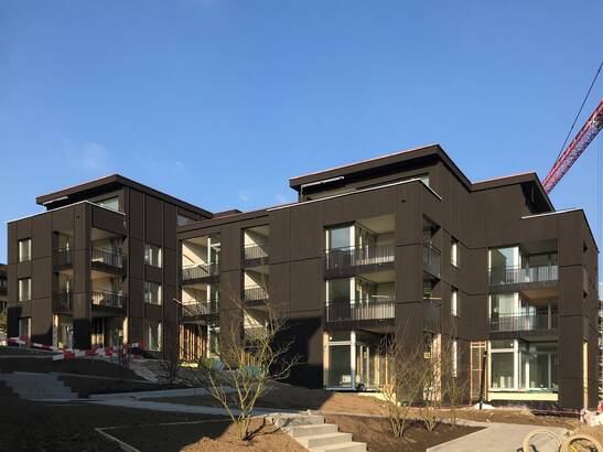 Actuellement, 143 logements - dont 66 logements locatifs - sont construits à Küttigen, dans le canton d'Argovie, selon les plans d'erp-architekten. S'y ajoutent 20 maisons individuelles mitoyennes, planifiées par le bureau ffbk.