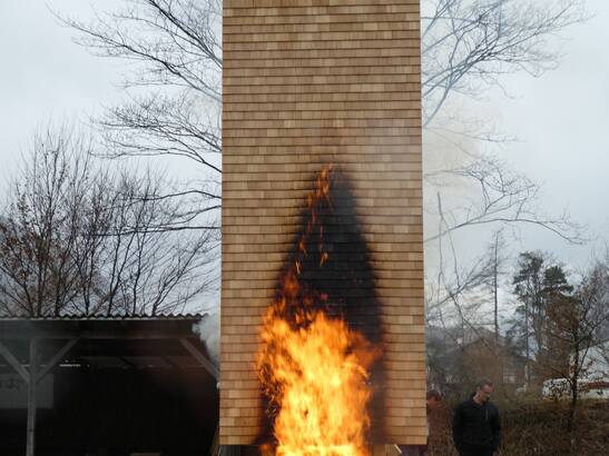 Les façades en bardeaux sont particulièrement esthétiques lorsqu'elles enveloppent l'ensemble du bâtiment sans être interrompues par des tabliers ou des barres coupe-feu. Il restait alors à évaluer si un incendie se propageait à l'extérieur avec une rapidité inadmissible ou de manière "auto-grimpante". La propagation des flammes dépend de la dimension et de la stratification des bardeaux ainsi que de leur comportement à la déformation. Pour la construction des nouveaux immeubles d'appartements Wolf et Edelweiss à Andermatt, Timbatec a déterminé le comportement au feu d'une telle façade lors d'essais d'incendie.