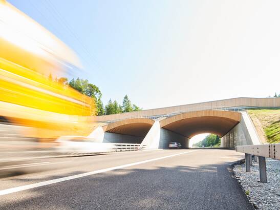 Lorsque les animaux traversent l'autoroute A1 près de Suhr, ils ne remarquent pas qu'ils passent sur le premier pont pour animaux sauvages de Suisse, recouvert de bois. Pour eux, il est important que leurs territoires de l'autre côté de l'autoroute soient à nouveau accessibles. Comme les voies de communication coupent les habitats de la faune sauvage, l'Office fédéral de l'environnement définit des corridors faunistiques d'importance suprarégionale qui sont rétablis par des ouvrages appropriés. Entre Gränichen et Suhr, la construction en bois de 50 mètres de large permet aux animaux sauvages de traverser l'autoroute en toute sécurité.