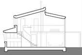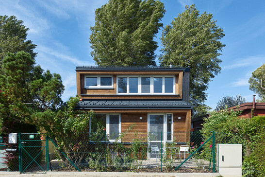 L'ensemble de la construction a été réalisé en ossature bois. Le toit en appentis décalé constitue une particularité. Deux bandes lumineuses ont été placées dans le décalage sous le faîte. La majeure partie du premier étage est constituée d'une galerie ouverte qui fait également office de chambre à coucher. La galerie repose sur une poutre au-dessus de la porte de la terrasse, qui a été conçue comme une porte coulissante à levage.