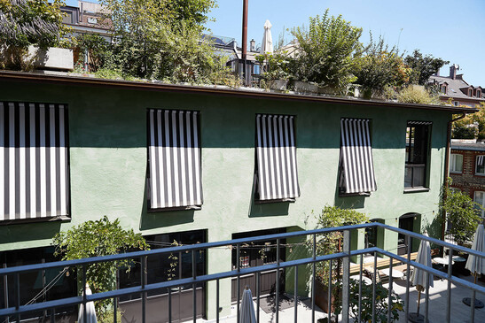 Lors de cette transformation, l'architecte Beat Nievergelt a repensé la maison et a conféré aux petits appartements de l'espace et une relation avec l'extérieur. Cela a nécessité une intervention considérable dans la structure primaire : les murs porteurs du couloir ont été partiellement supprimés en vue de la nouvelle structure spatiale, leur fonction porteuse étant reprise par des poteaux et des poutres. Les poutres en bois du plafond ont été mises à nu et remplacées là où c'était nécessaire, leurs espaces intermédiaires ont été remplis de béton léger et leur niveau a été redressé. Un faux plafond en plâtre et de la laine de roche contribuent à respecter les valeurs limites pour les bruits d'impact.