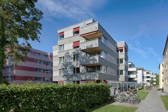 L'immeuble collectif de 5 étages de la Wehntalerstrasse a été construit avec des panneaux TS3 CLT. Grâce aux planchers en bois porteurs sur deux axes, les balcons et les encorbellements en porte-à-faux ont pu être réalisés de manière efficace et simple en construction purement en bois.