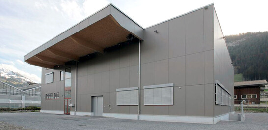 Pour ce bâtiment, notre bureau d'études a élaboré et optimisé le concept de structure porteuse. Le concept de la structure porteuse devait être adapté de manière à ce que le processus de production de l'entreprise Pernet puisse être organisé de manière efficace et sans problème. L'étage supérieur du hall est utilisé comme entrepôt, ce qui implique des charges permanentes importantes.