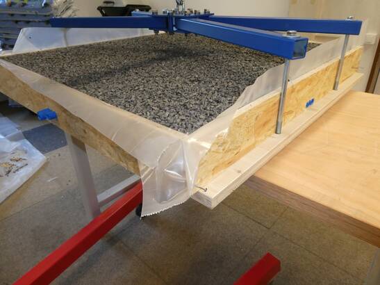 Épaisseur du matériau : normalement, le remblai est mis en place sur une épaisseur de 50 mm à 80 mm. Des épaisseurs plus fines (au moins 30 mm) apportent des améliorations nettement moins importantes de l'isolation acoustique ; les épaisseurs supérieures à 80 mm n'ont pas d'utilité considérable selon le fabricant du liant.